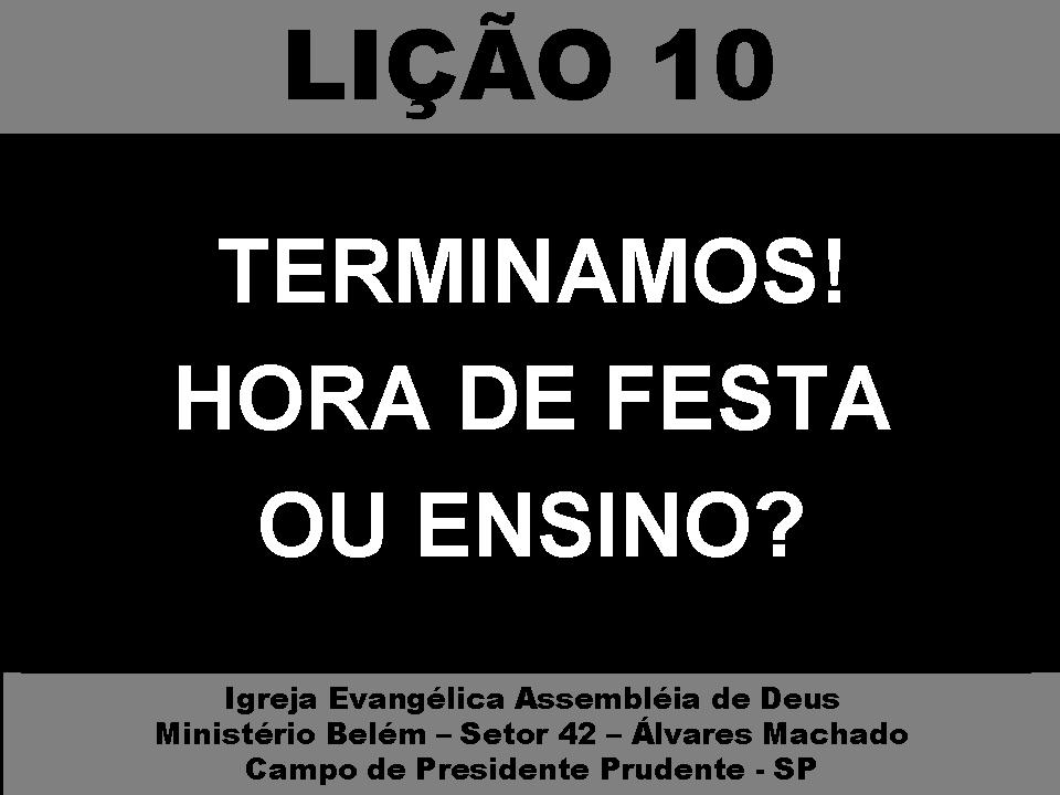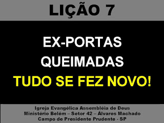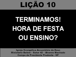 Estou terminando este trabalho, apresentação e apostila, com base no 4º trimestre de 2011. Serão 18 lições, a princípio, de acordo com os planos de aula de cada lição do referido trimestre, acrescido dos comentários publicado na seção pós aula e outras pontuações.
