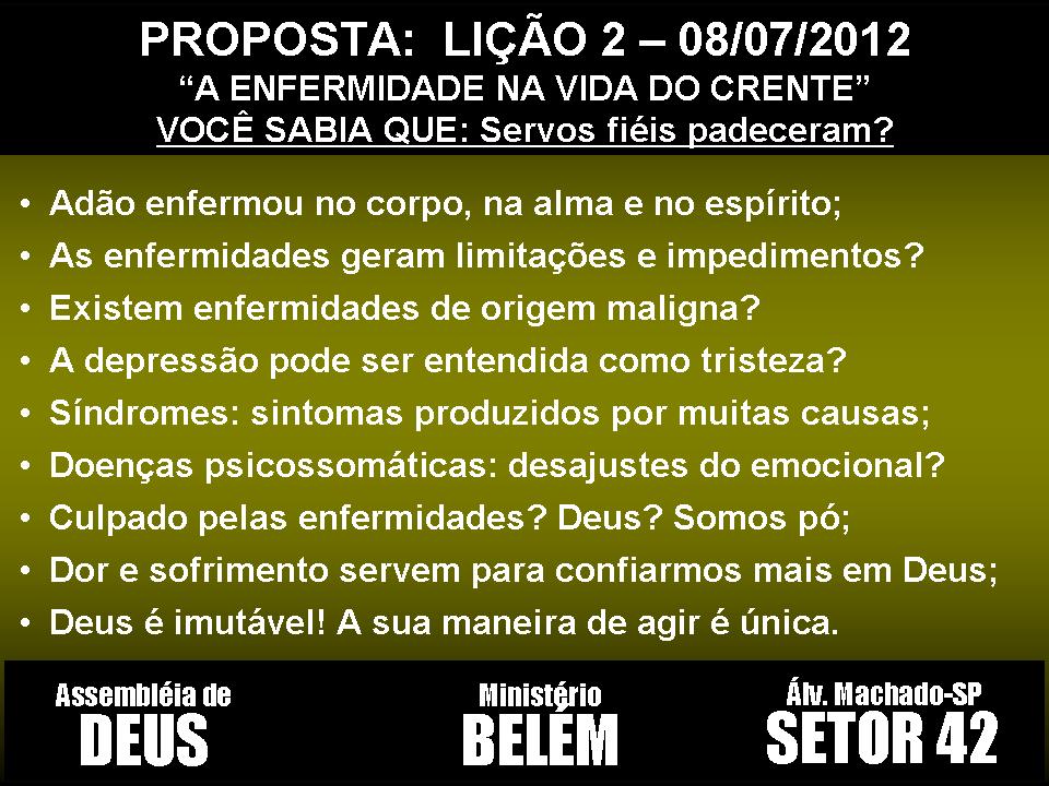 Proposta das lições - 1 a 7