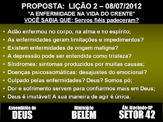Até as 19 horas de amanhã (sexta-feira) estarei postando os materiais para a lição 12